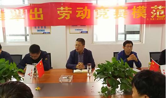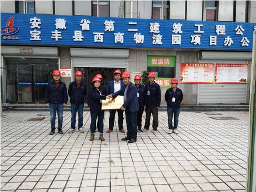 117上午,公司党委书记刘贤奇在党委事情部主任施用宏等人的陪同下,代表公司党委授予河南宝丰项目 “党员先锋号”声誉称呼。