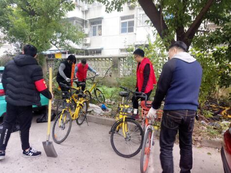 早上8点,所有加入运动的青年自愿者准时在公司荟萃, 前往裕溪路社居委,在社区事情职员的配合下整理公司生涯区绿化带中的种种垃圾以及隐藏在绿化带中的破旧共享单车 。