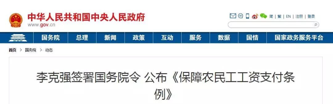 李克强签署国务院令 宣布《包管农民工人为支付条例》