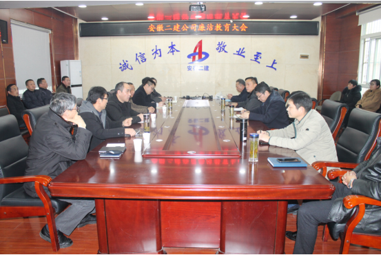 1月14日,安徽二建公司召开清廉教育大会,公司向导班子成员以及中层管理职员加入聚会,党委副书记、纪委书记仇多维主持聚会。