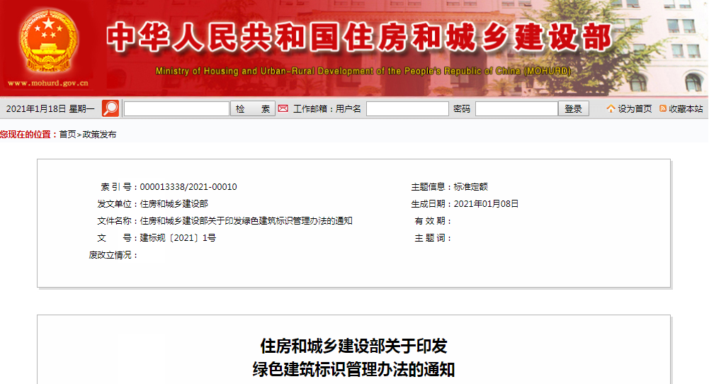 克日,住房和城乡建设部印发《绿色修建标识管理步伐》(以下简称《步伐》),要求各地住房和城乡建设主管部分团结现实认真贯彻执行。