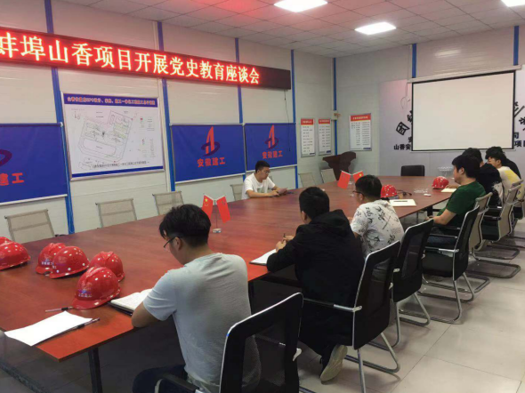 为落实好习近平总书记在党史学习教育发动大会上的主要讲话精神,开展党史宣布道育,普及党史知识 。5月26日,一分公司团支部书记蒋大鹏在蚌埠山香安顿房EPC项目开展党史学习教育青年团员座谈运动 。