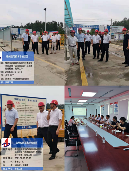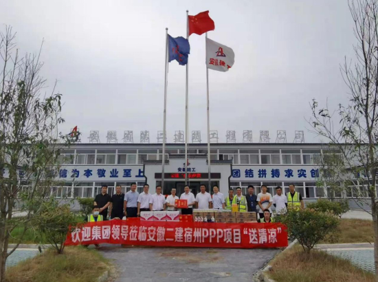 8月10日,建工控股党委委员、纪委书记王汪苗一行赴宿州三馆一院一中心及应用手艺学校项目开展送清凉运动,发放防暑降温物品,探望、慰问奋战在劳动竞赛一线的项目职工。