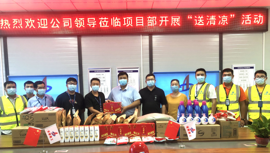为做好高温季节防暑降温事情 ,切实维护职工清静康健权益 ,8月13日上午 ,公司副总司理费勤波 ,工会副主席、女工主任王俊一行赴二分公司肥东县人民医院公共卫生综合楼项目开展2021年夏日“送清凉”运动 ,对项目事情举行指导 ,为坚守在一线事情岗位的职工送去防暑降温慰问品 ,给项目部带来了一缕清凉。