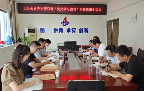 8月30日上午 ,三分公司党支部召开党史学习教育专题组织生涯会 ,聚会由支部书记陈习武主持 ,公司纪委书记沈壮、党委事情部、纪检监察室、人力资源部相关职员到会指导  。