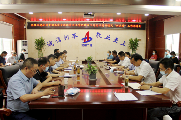 9月3日下昼,安徽二建公司召开贯彻落实天下国有企业党的建设事情聚会精神情形“转头看”事情安排会,学习转达了建工控股党委贯彻落实天下国有企业党的建设事情聚会精神情形“转头看”事情安排会暨三季度党群事情聚会精神,并对公司开展“转头看”事情举行安排安排。公司党委副书记、总司理李建成作发动讲话,公司党委副书记、工会主席王军主持聚会。公司向导班子成员、机关部分主要认真人、所属各单位党政主要向导参会。