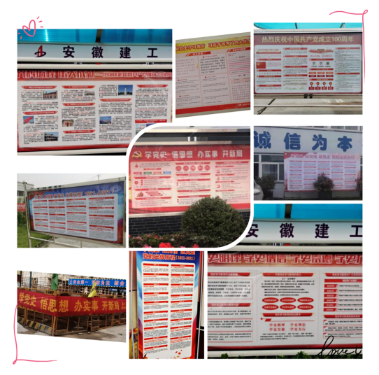 为庆祝中国共产党建党建设100周年,牢靠“不忘初心、切记使命”主题教育效果,指导宽大职工牢牢围绕学懂弄通做实党的立异理论,做到学史明理、学史增信、学史崇德、学史力行,分公司党支部招呼各项目部开展“制展版 学党史”运动。