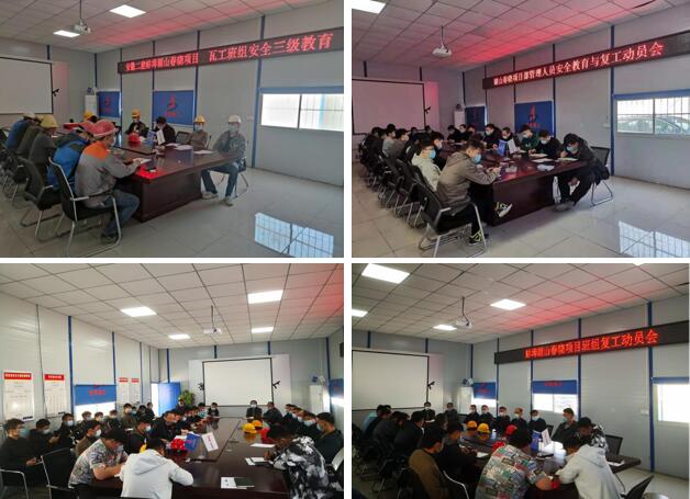 2月19日,项目召开班组复工复产发动会,并对返岗的项目管理职员、劳务职员举行三级清静教育 。