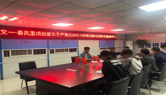 另外转达了认真学习安徽省纪委《关于贯彻落实习近平总书记主要指挥精神 增强监视执纪 坚决阻止餐饮铺张行为的通知》公司纪委《关于严肃2020年中秋国庆时代纪律作风的通知》。