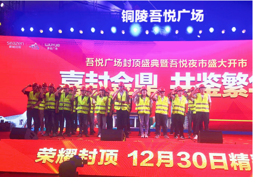 百花争艳,条幅高悬。安徽二建三分公司承建的铜陵吾悦广场项目历经七个月时间,终于在礼炮声迎来了封顶仪式,七个月时间不长不短,弹指一瞬,履历了严冬腊月的低温施工,履历了春暖花开的疫情抗战,他们一刻未曾停歇。