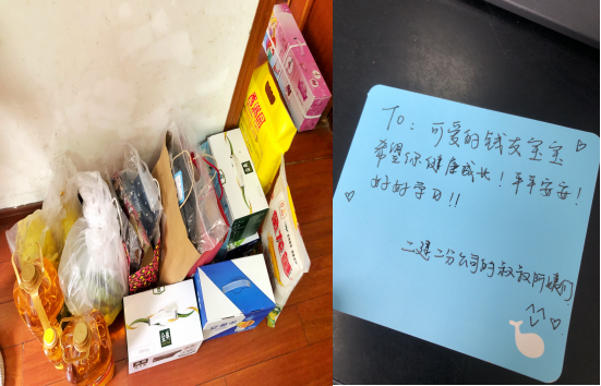 时隔三年,二分公司工会意系祖孙二人的生涯状态,相识到现在他们已被我公司职工接来合肥,老人租房带着孙子在省二建幼儿园上学。自愿服务队相识到详细需求后,马上在分公司规模内组织了捐钱和捐赠物资的扶贫帮困自愿服务运动,二分公司职工起劲响应,踊跃捐赠,短短几天时间募得慰问金4100元以及米面粮油、牛奶酸奶、水果、儿童图书、玩具、老人及孩子的衣物鞋子等生涯物品。2020年5月29日上午,二分公司工会主席黄业云向导三支自愿服务队代表前往老人家里探望老人及孩子。服务队将各人男蜩的慰问金和生涯物品一并交给了他们,希望能让他们的生涯过得好一点,能够感受到二建各人庭的温暖。攀谈中,老人质朴的面颊上始终带着微笑,身旁的孙子也是灵巧懂事,很是有礼貌,一直开心地说着“谢谢叔叔姨妈!”