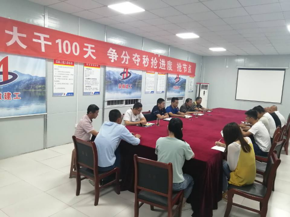 8月30日,一分公司淮北国金华府(紫麟苑)项目在现场聚会室召开“抢进度、保工期、稳预期、促提升,大干100”劳动竞赛发动会 。聚会由分公司生产司理崔俊主持,分公司所属科室、项目部全体职员及各班组认真人会 。