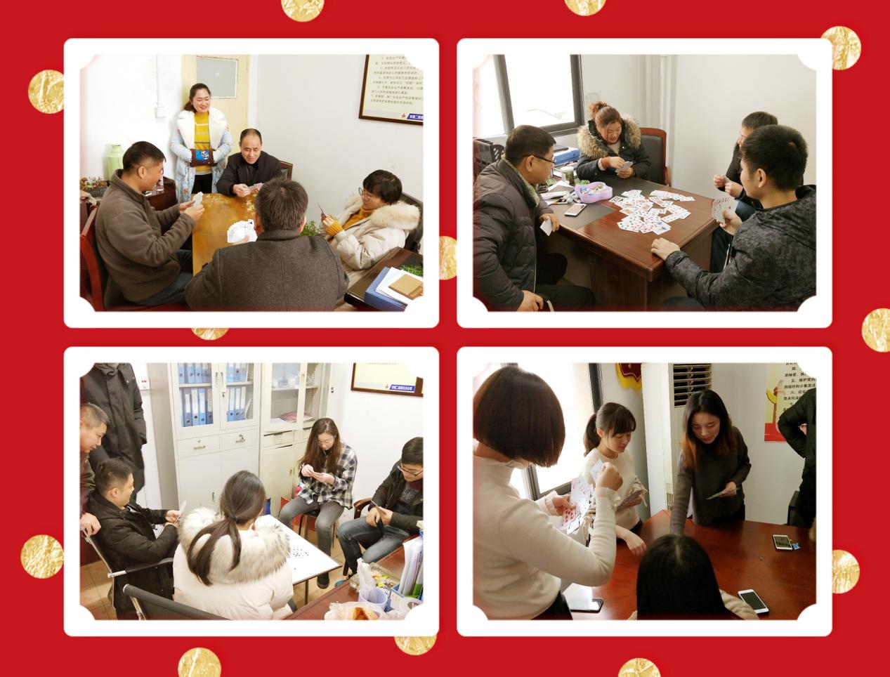 21上午 ,五分公司举行了职工“迎新春”掼蛋比。角逐接纳抽签配对的方法决议参赛组合温顺序 ,设一、二、三等奖及加入奖。现场气氛愉快祥和 ,参赛伙伴配合默契斗智斗勇 ,充分验展自己的牌技、牌品。牌局你追我赶 ,有遥遥领先居高不下的 ,也有开局倒运厥后居上的 ,但无论输赢 ,各人喜笑颜开 ,观战者也兴致勃勃。