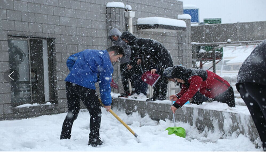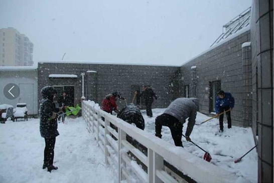 运动历程中,各人不畏严寒,顶着风雪,挥舞着铁锹对屋面、停车场以及公司大门外的积雪和结冰举行清扫,经由4个多小时的奋战,各人同心协力,分工明确,配合默契,终于将积雪所有根除。虽然室外温度很低,各人的衣服、鞋帽都已湿透,但各人劳动的热情和团结的力量让这个冬日变得格外温暖。扫雪运动不但包管了职工的出行清静,更通过此次运动,充分体现出公司员工优异的精神面目和团队凝聚力。
