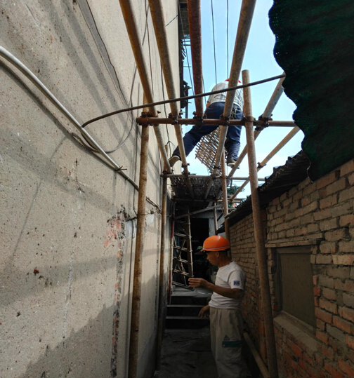 克日,公司后勤综合服务部在对公司老旧衡宇举行一样平常巡查时发明,原四分公司生涯基地大礼堂山墙檐口泛起中止式沉降断裂。经检查,此处的问题是由墙体自重及屋面木质结构自然腐败所导致的。山墙脚即是住户收支通道,随时有坠落伤人的清静隐患。鉴于大礼堂层高十几米,无法实验维修处置惩罚,我部第一时间向向导汇报后,实时拿出整理计划,顶着烈日高温,连忙沿山墙搭建一条十几米长的钢管架清静通道,扫除了隐患,确保住民收支平安。