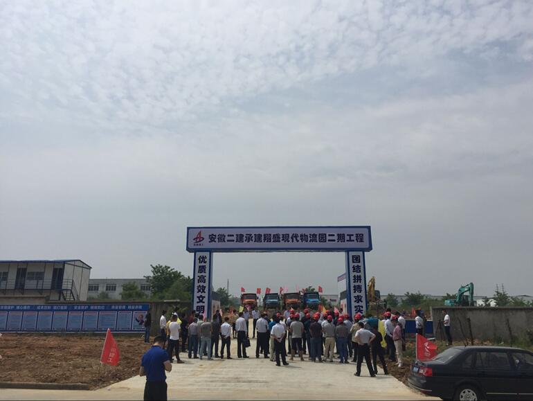 5月18日上午三分公司承建的安徽翔盛现代物流园项目举行开工仪式,该工程位于六安裕安区安徽翔盛现代物流园,共两栋厂房和一栋综合办公楼,总修建面积37315平方米,总造价约5300万。公司副总司理刘国良、分公司司理叶和永,安徽翔盛物流管理服务公司总司理杨刚等人加入。